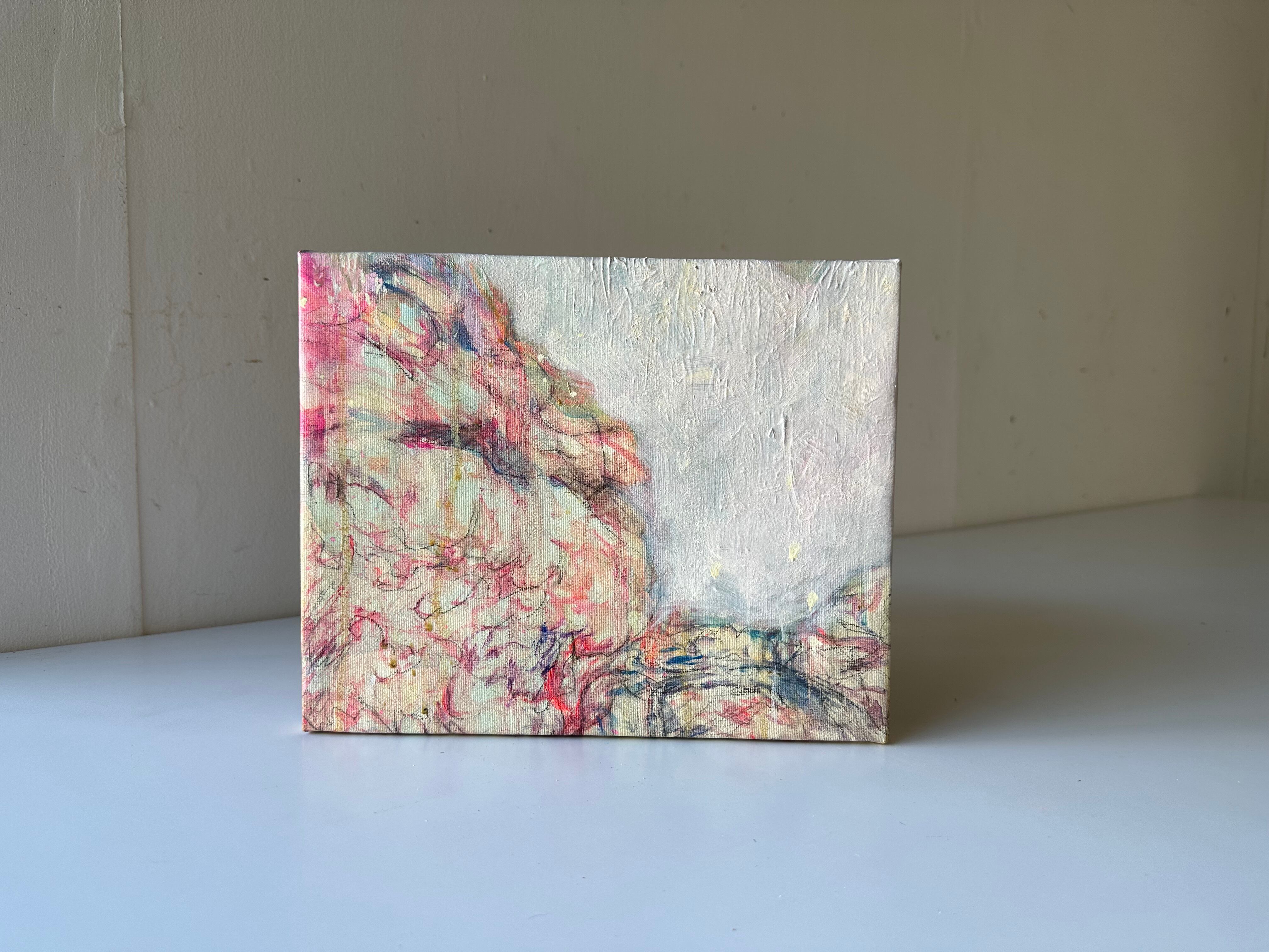 自然の持つ線や空間の美しさを抽出して自由に色を響きあわせるようにして抽象画を描いています。