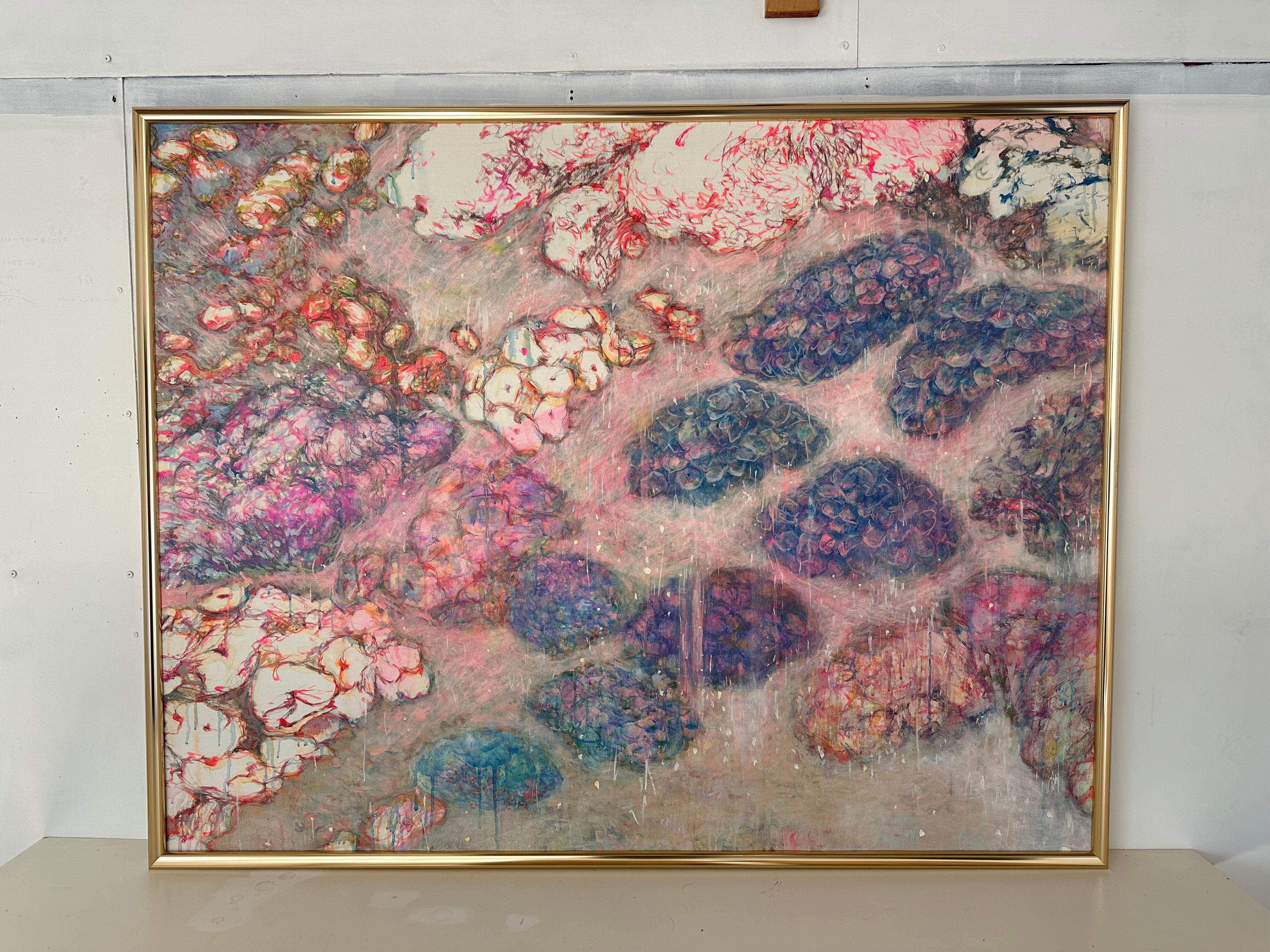自然の持つ線や空間の美しさを抽出して自由に色を響きあわせるようにして抽象画を描いています。